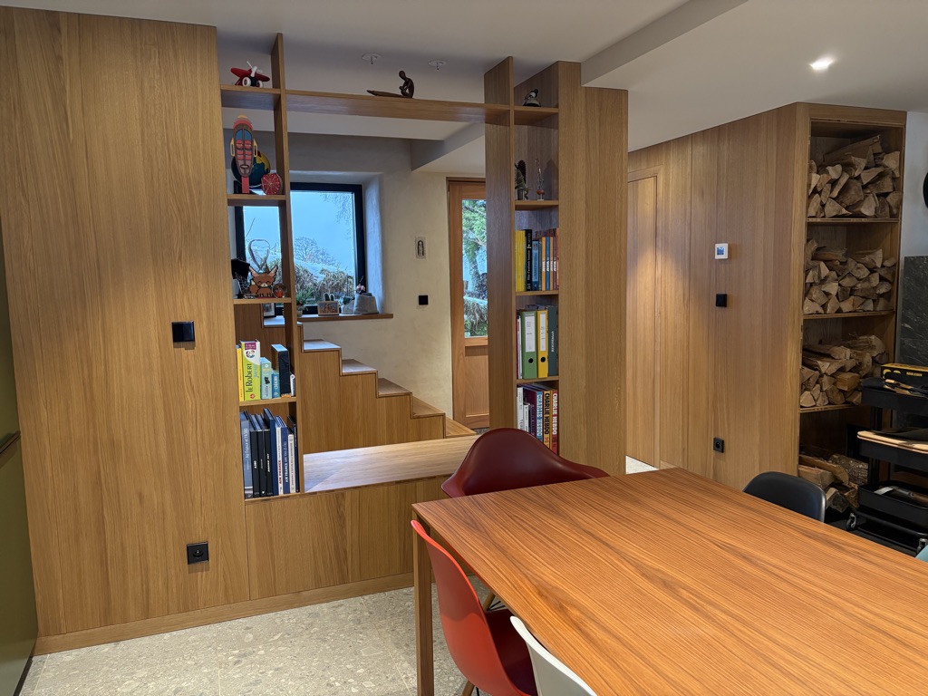 Dès l’entrée, vous découvrirez un espace accueillant avec dressing, menant à une cuisine entièrement équipée, pensée pour allier convivialité et fonctionnalité. Un coin lecture chaleureux ainsi qu’une chambre complètent ce niveau.