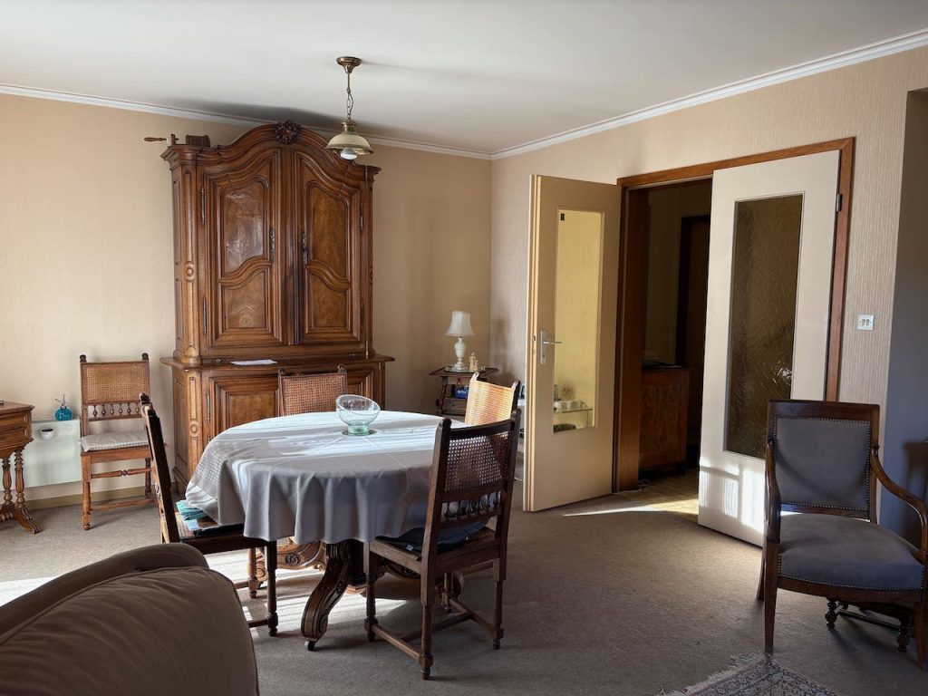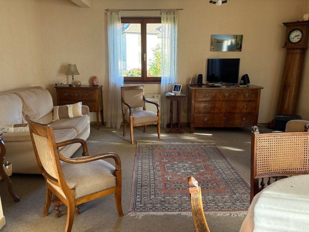 A l’étage trois chambres, une salle de bains et un WC. Le sous-sol dispose d’un garage, d’une lingerie et d’une cave. Chauffage électrique.